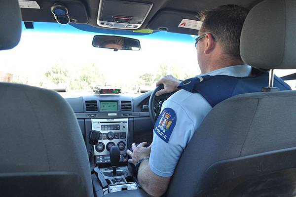 等了十分鐘一個警察杯杯開著警車停下來問我是不是要搭便車? 他要去balclutha