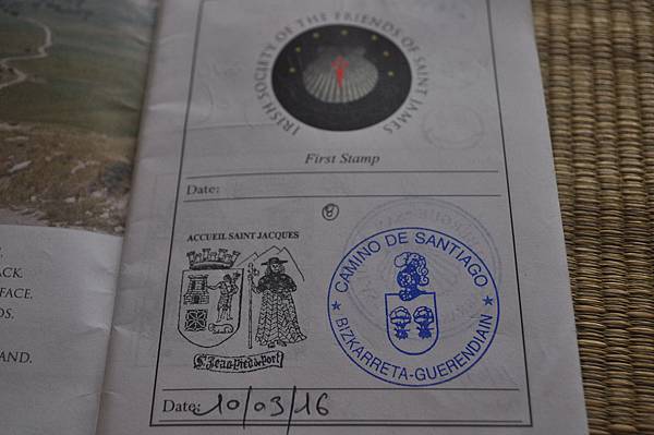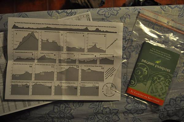 我也做了登記, 在第一站蓋了章之後,拿了資料(一張路線起伏圖一張住宿資料一張要從SJPP走到R的路線圖)