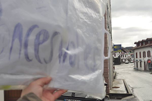 而我在搭便車時一個法國老師他是住在SJPP我告訴他我要往這方向是因為我要去走法國之路