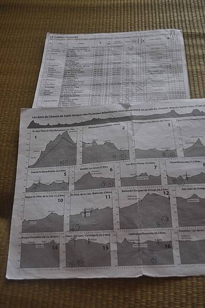 我也做了登記, 在第一站蓋了章之後,拿了資料~(一張路線起伏圖~一張住宿資料~一張要從SJPP走到R的路線圖~)