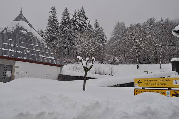 但這裡的辦公室婆婆四點才會開門,我到的時候不只沿路上山的路邊是雪到了R的時候發現
