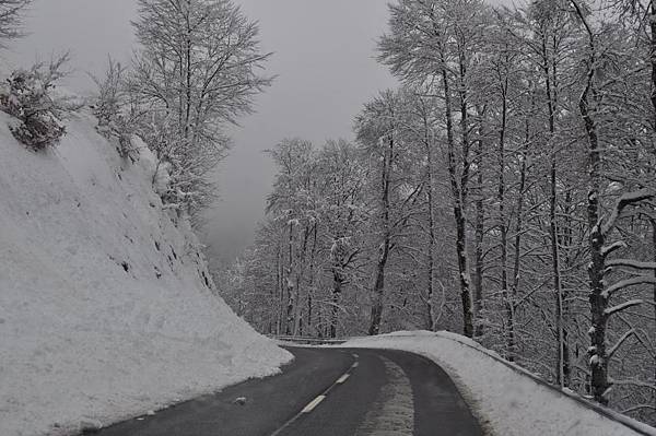 因為雪路! 天氣的關係整座山都覆蓋著雪有些地方不知道是危險還是封路