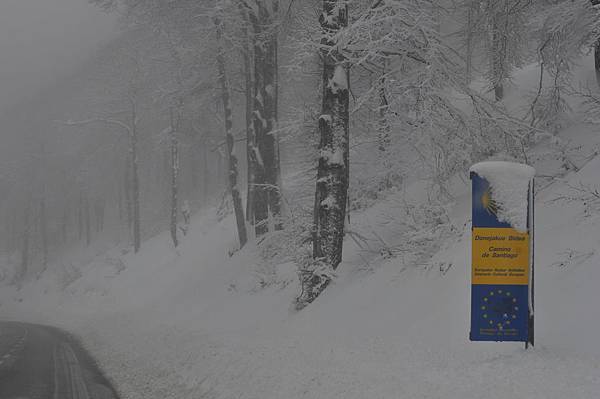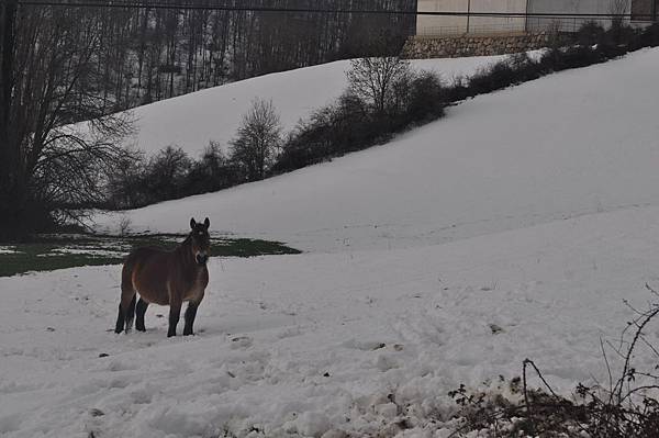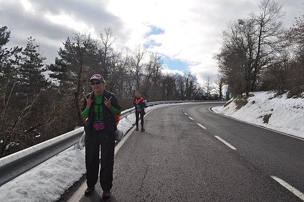 我們必須走在公路上因為小徑都積雪了!