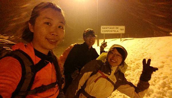 我們下午走到目的地跟早上出發的照片靠著路燈拍照