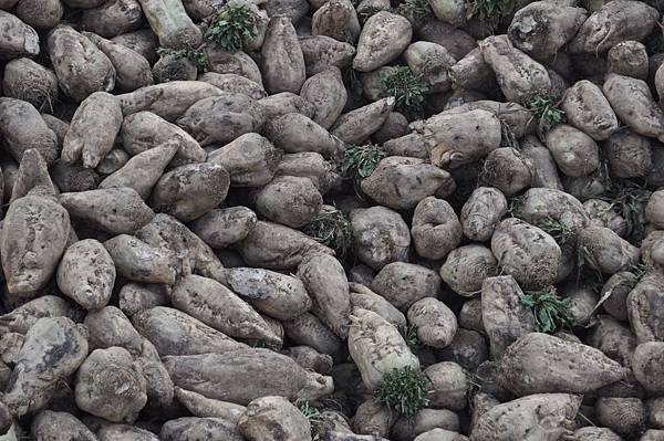 路上看到很多像是白蘿蔔的東西還有乾枯的玉米田