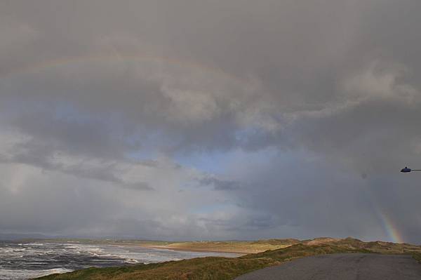 沿著海岸線走了一段風景很漂亮但突然下起了雨也看到了彩虹