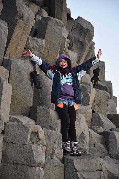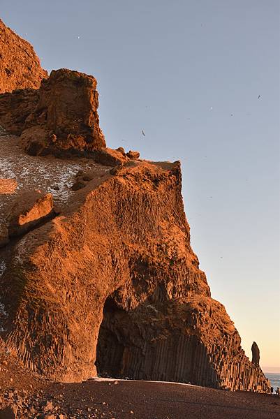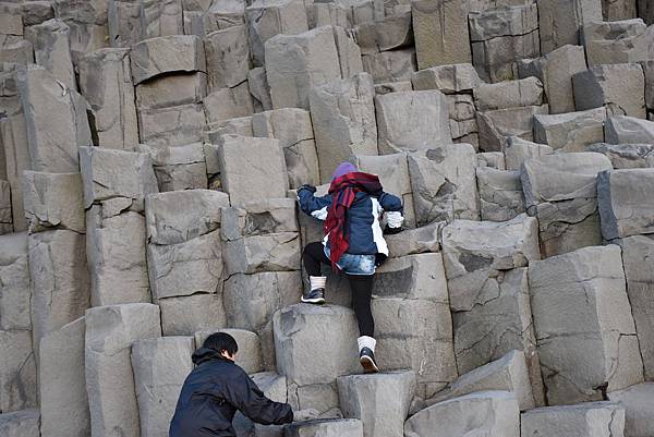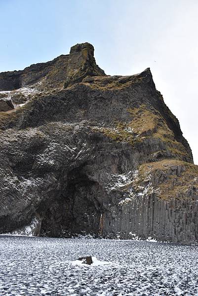 海灘上很多人爭相拍照的是 黑沙灘著名的火山節理地形 Hálsanefshellir Cave
