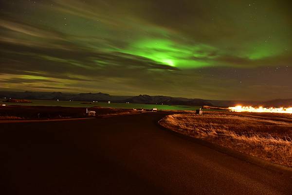 這張是住在hofn的那天的極光有住宿所以只到住宿的附近的港口邊也可以看到附近很亮!