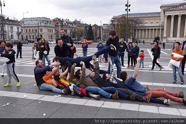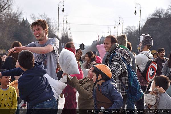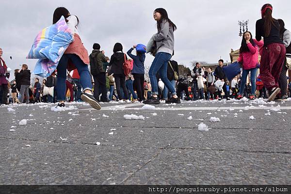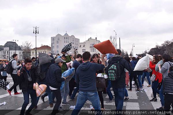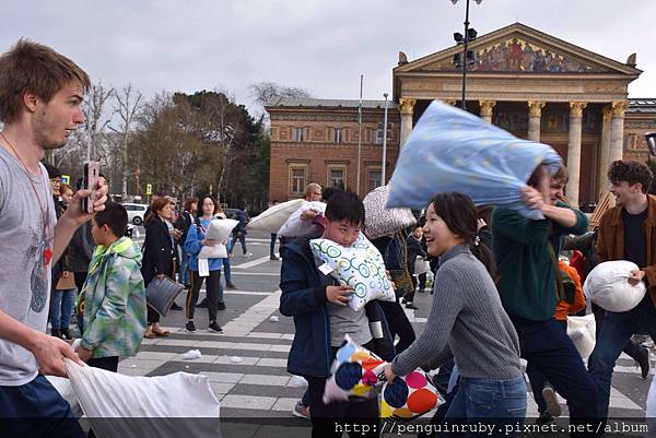 昨天星期六為世界枕頭大戰日~在布達佩斯的英雄廣場也有活動~