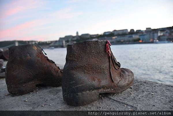 這散落的鞋群長達40公尺。為的是紀念第二次世界大戰1944~1945年期間,被納粹槍決殺害,然後推下多瑙河的猶太人。