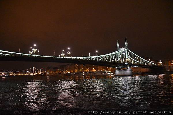 而橋上有燈光,到了晚上就像掛滿燈飾的兩條繩索串起布達與佩斯兩岸,非常的漂亮!