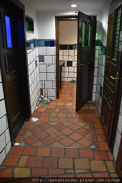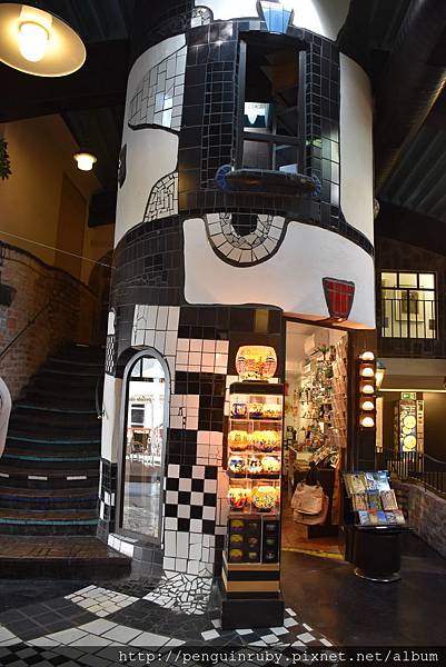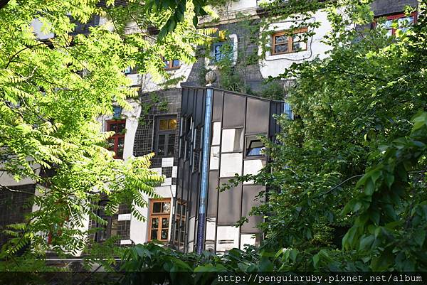 出了這棟仿建築的後門往右邊走到底左轉。不遠處有另一棟百水先生的建築。