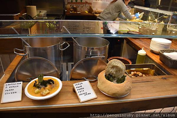 是還蠻好吃的。其中有一份是湯裝在麵包內。因為是濃湯所以還好