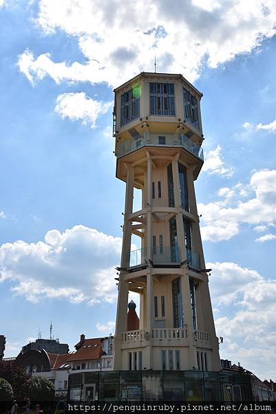 這座水塔晚上會有七彩光芒,很漂亮。