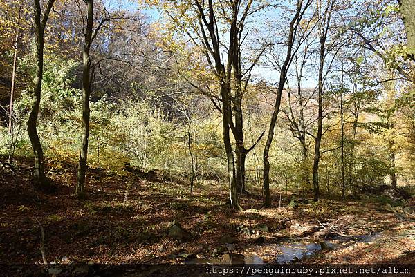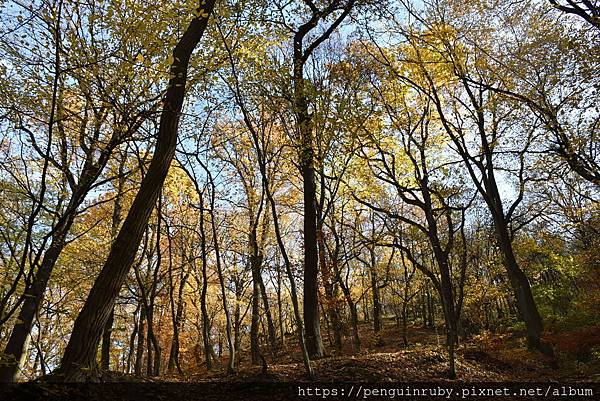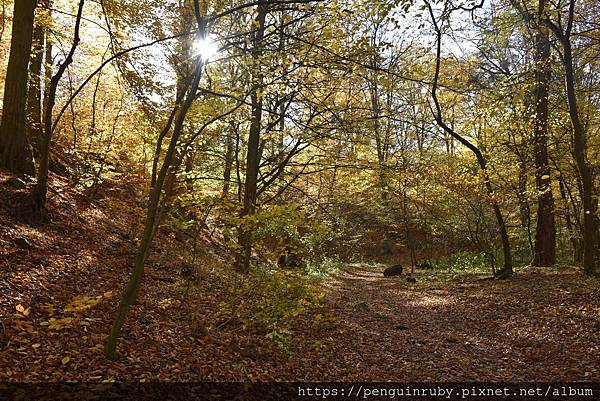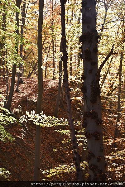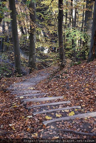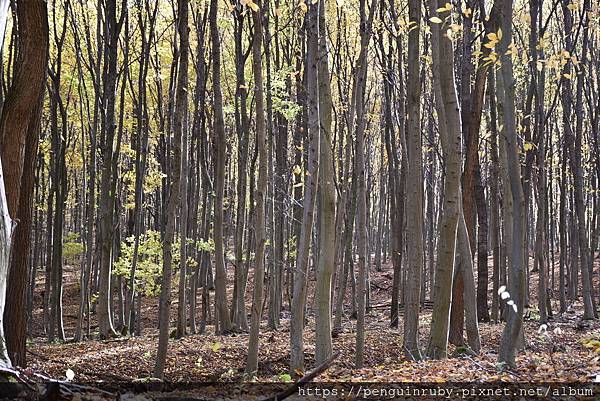 滿地的落葉,樹種,跟剛剛完全是不同的景致。