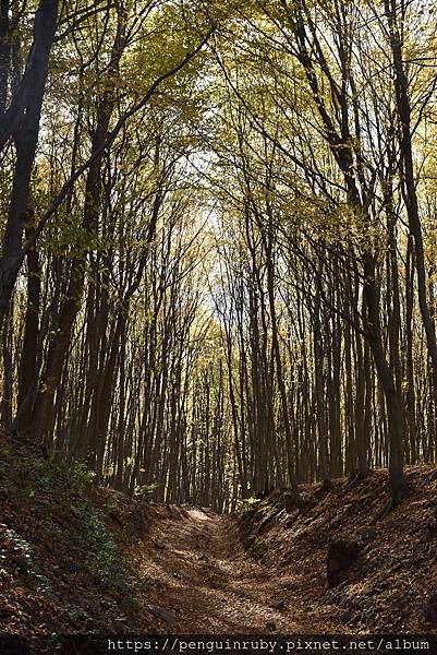 到了一個分界點,我們就轉頭繞另一條路下山。平整的下坡路,
