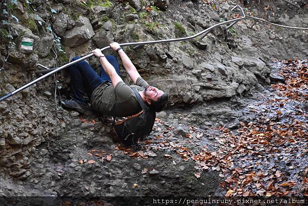 然後我就抓著欄杆攀爬過去,希望欄杆不要因此斷掉。