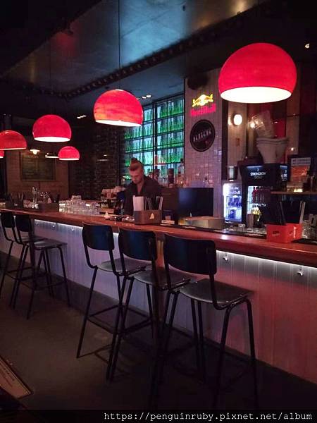還好酒保有笑臉迎人的跟我們說我們可以自己找位置坐。
