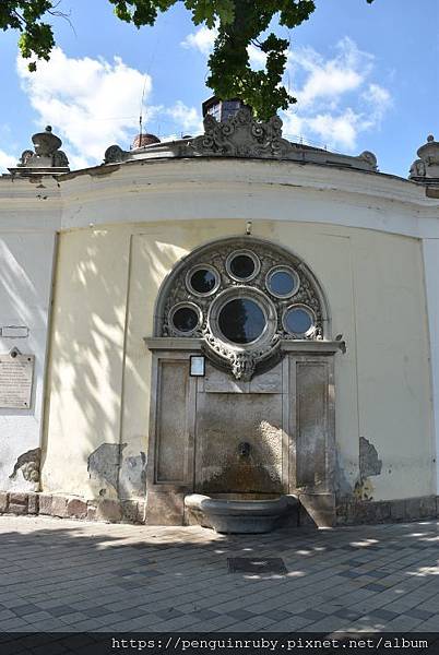 西面有一個公共區域,中間有噴泉,東邊有一個綠色小樹林。