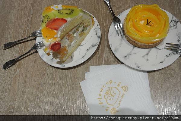 另一個蛋糕是黃色玫瑰花造型,上面是芒果,