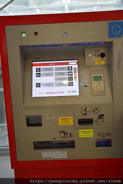 出機場之前,有一台紅色小機器,你會看大家都在那邊排隊買票。