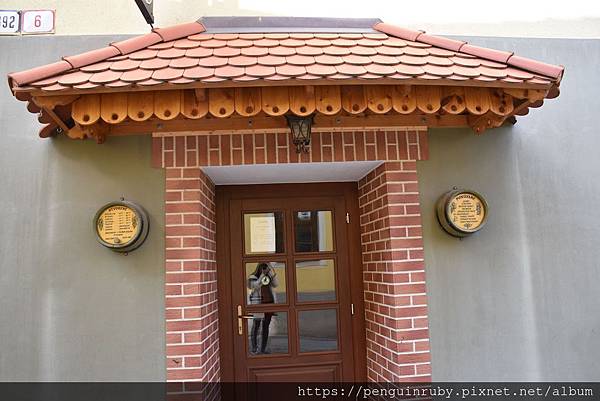 外牆經過裝飾,並有尼特拉的徽章在大樓正門的上方。