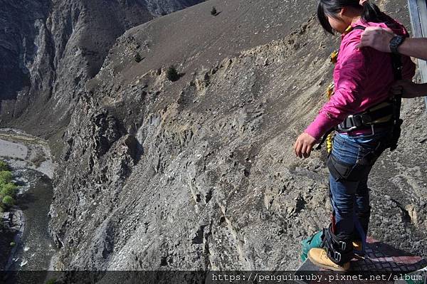 周遭是峽谷,下面是川流,但跳下去不會像在另一種在橋上跳下去的會碰到水,