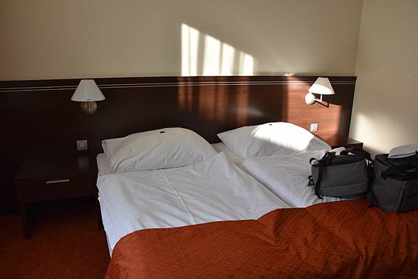 然後我想說是雙人房,硬ㄠ過夜。不確定是不是因為他登記入住時也把我登記進去,所以就沒有給我們一張大床。