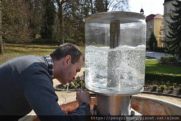 其他就是在溫泉區,有幾處可以免費喝或者裝溫泉水的地方,也可以看到他們賣捷克很常見的紀念品,