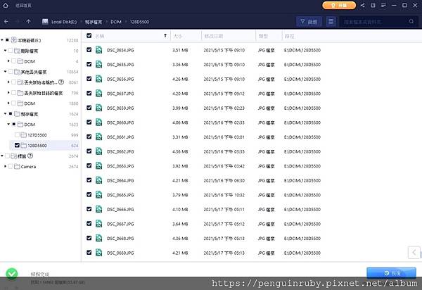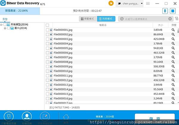 這個軟體有找到我更多的檔案,可惜,因為是圖片檔,所以20mb最後只能復原5張照片。