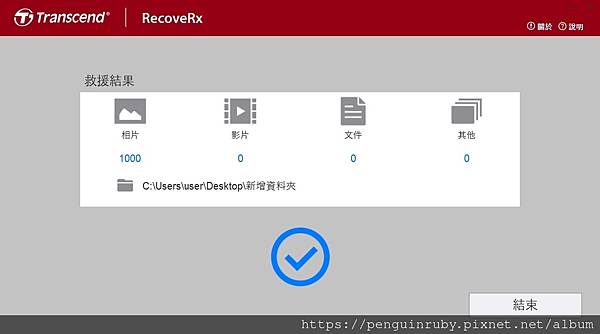 而完成會如下,沒有太多選擇。就是直接結束。然後我確認他救回來的檔案,