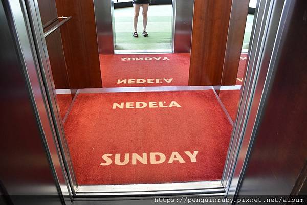 電梯內有地毯,而且會依照每天不同更換。如果你來住是星期一,