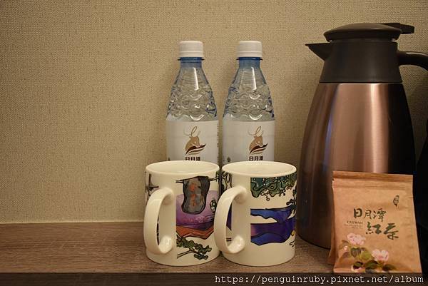 2.房間內都有備品,還有日月潭的馬克杯,以及熱水壺可以泡茶。房間外面也有飲水機。