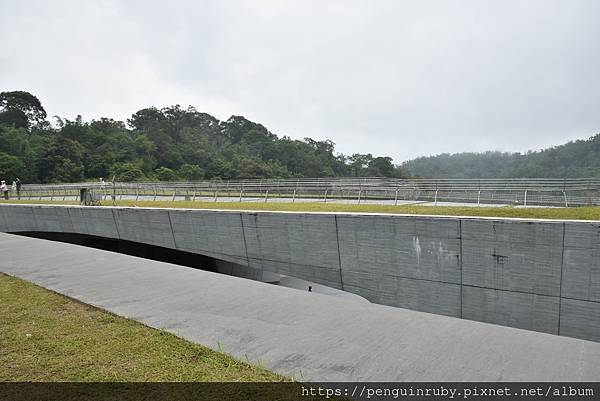 然後他就蓋了這座向山遊客中心,在頂樓周為整體都鋪上了綠草地,