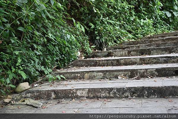 我們從廟旁邊的階梯開始往上爬。身體還是不堪負荷的我,