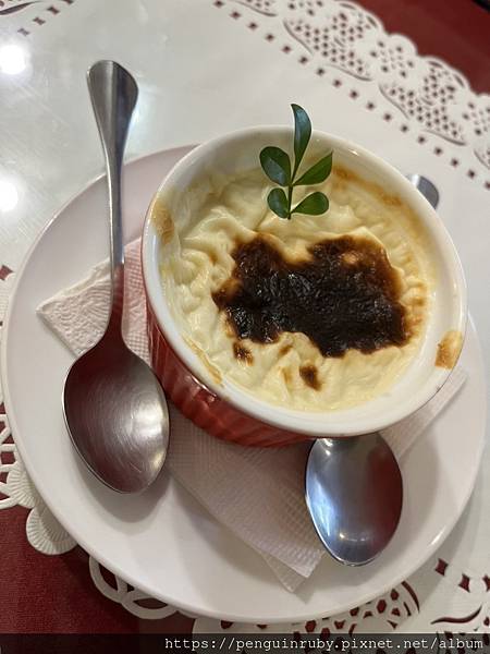 而有一道看起來像是烤布雷,實則是米布丁的餐點,