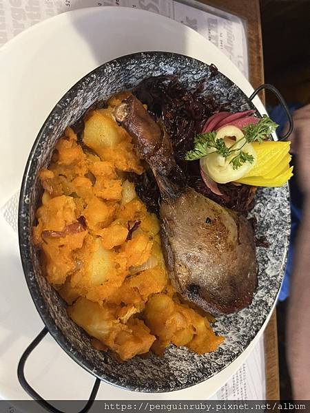 我們點的是鴨腿肉搭配紫高麗菜跟馬鈴薯,