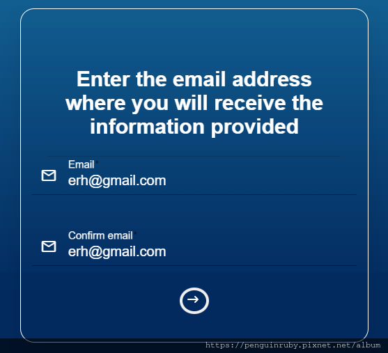 首先,先填寫你的email,因為申請完畢會寄送QR code到你的信箱。