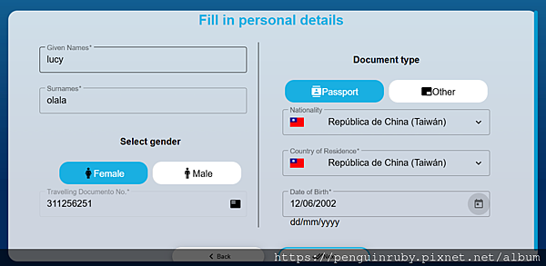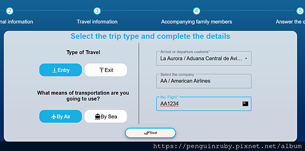 像我是搭飛機入境,然後我就選擇了我的航空公司並填入班機號碼。