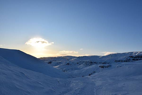 因為踩在雪裡面還要小心雪滑所以根本走不快