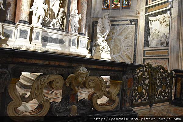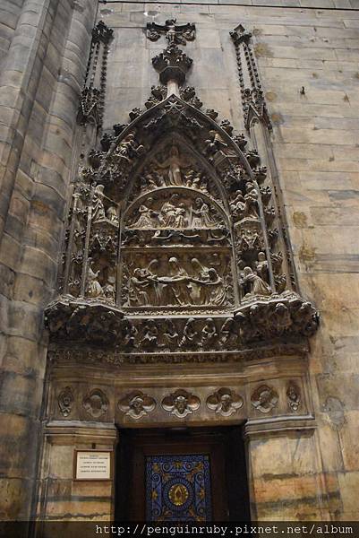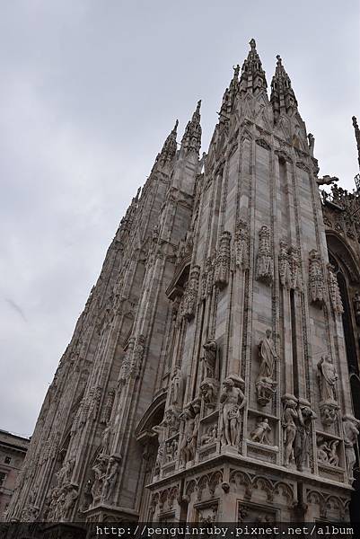 教堂外觀的建築一尊尊的雕像跟尖塔