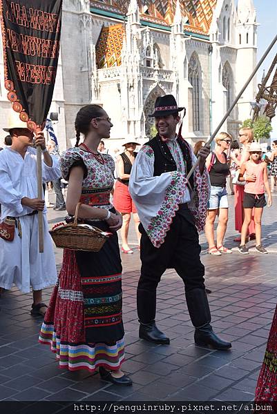 遊行的人穿著傳統服飾,依照去年的資訊是...從布達城堡區那邊開始遊行過來到漁人堡結束。