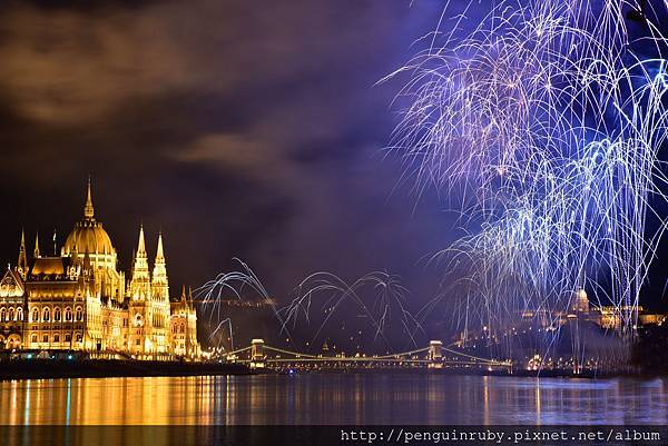 國會大廈,鎖鏈橋,布達城堡跟煙火就會全部進到畫面內。而且如果你如果能在橋上佔到一個位子,