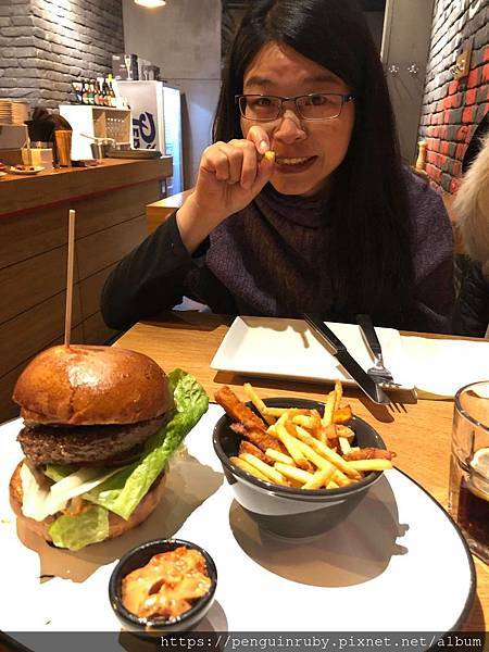 所以簡單點了一個漢堡。蠻大的不錯吃。只是當初說要切一半,